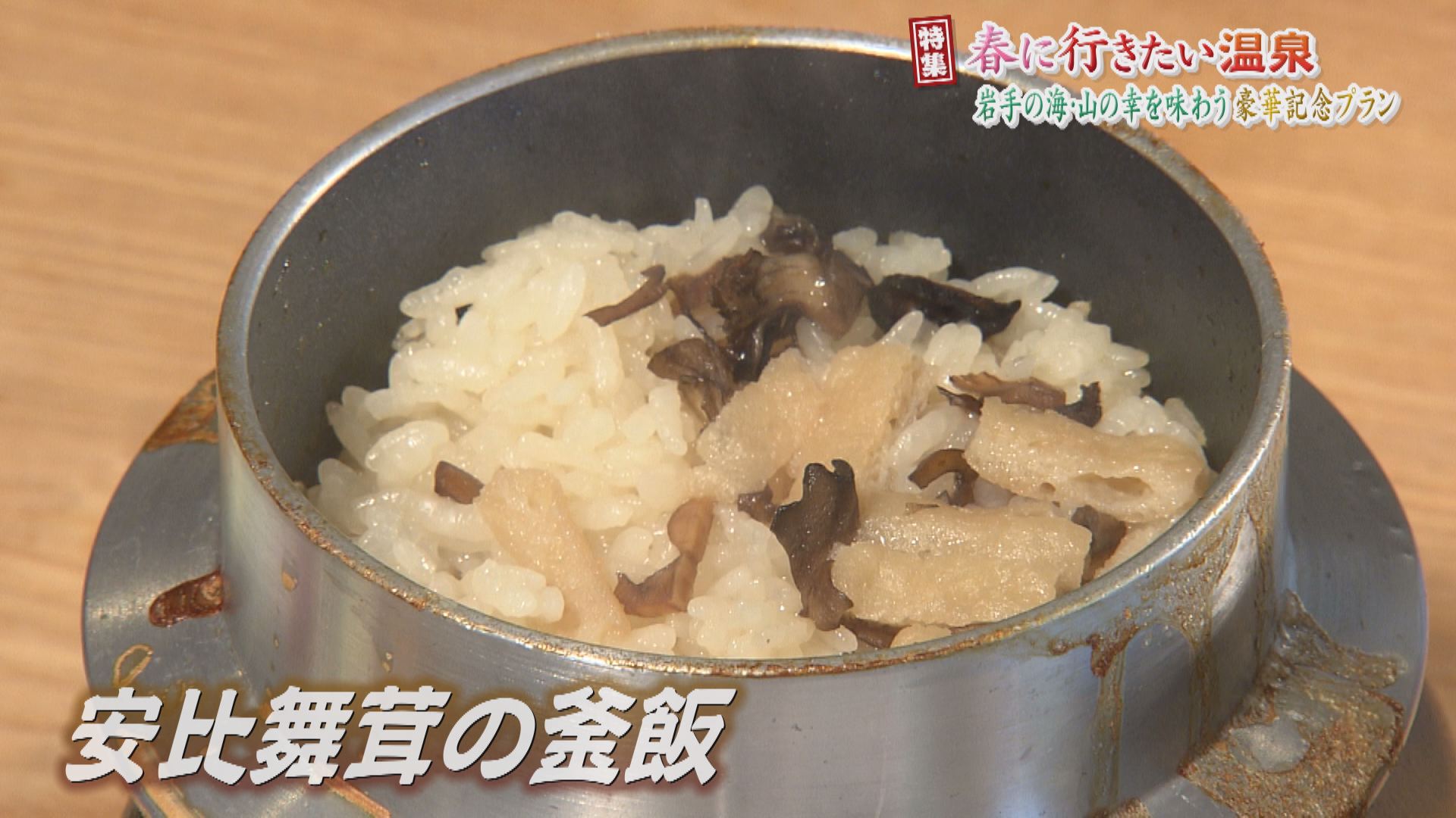 静流閣の名物で「安比舞茸」を使った釜飯は、