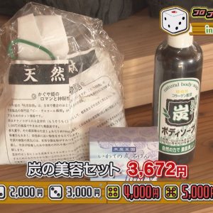 炭ボディソープ、炭せっけん、天然の入浴剤を組み合わせた、