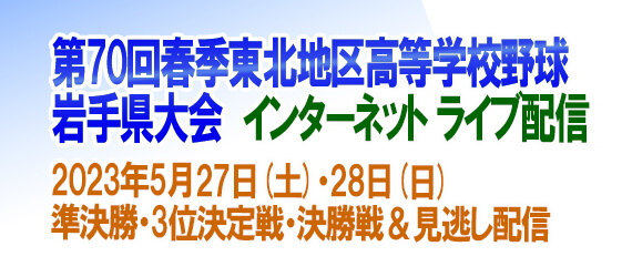 岩手朝日テレビでは、第72回春季東北地区高等学校野球岩手県大会の準決勝2試合、第3位決定戦、決勝戦を野田村総合運動公園野球場(ライジング・サン・スタジアム)から、ライブ配信します。